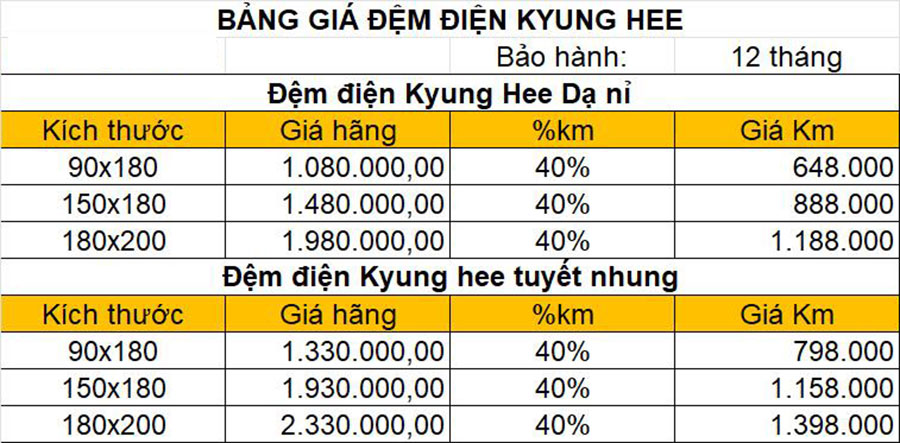 Đệm điện Kyung Hee Ni Da Ghi Sáng